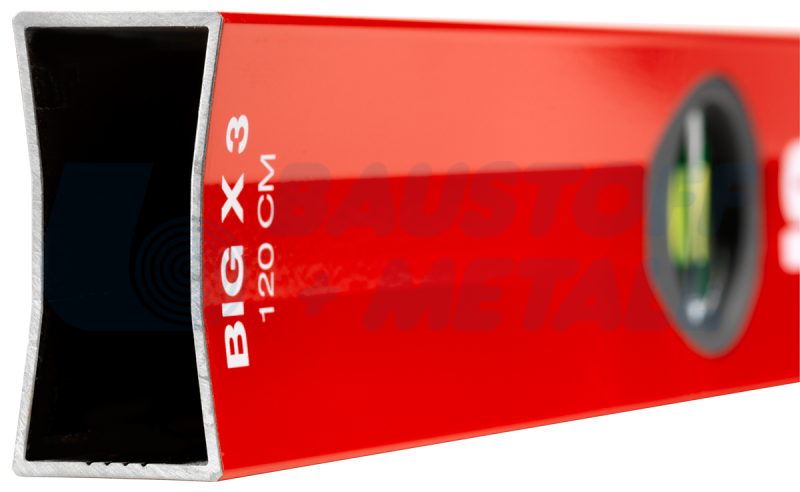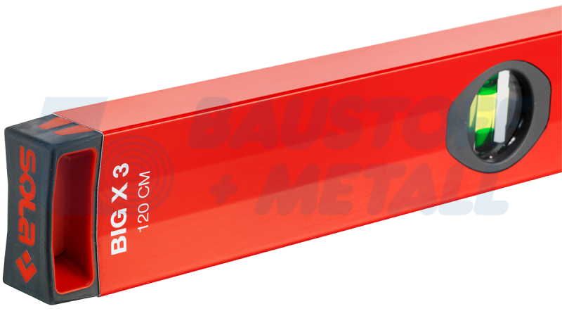 Нивелир алуминиев SOLA Big X 3, дължина 100 см, с червено покритие и 1 хоризовнална и 2 вертикални либели, размери 52 х 25 х 1000 мм, по-добро, по-бързо и по-точно отчитане чрез патентованите флакони SOLA FOCUS, с устойчиви на счупване либели от акрилно стъкло с увеличителна леща (+60%) и 30 години гаранция срещу изтичане, с подобрена четливост при слаба светлина благодарение на оптимизираната светеща подложка SOLA и ударопоглъщащите крайни капачки от 2 части осигуряват оптимална защита срещу повреда, с изключителна точност на измерване в стандартно и обърнато положение, ергономичен, твърд на усукване алуминиев профил за дълъг живот на нивелира с прецизно измерване, производител SOLA-Австрия