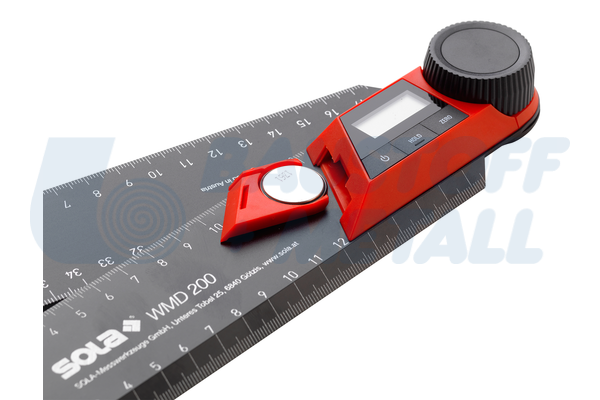 Измервателният ръб на WMD е снабден с вграден стоп (ограничителен ръб), което позволява уредът да се използва и като дигитален ъглошлеп (try square).