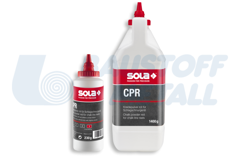 Креда на прах SOLA CPR 1400, цвят ЧЕРВЕН, ясно се вижда на тъмни повърхности, фино смлян оцветител осигурява висока видимост, устойчив на дъжд и вятър, опаковка 1400 гр