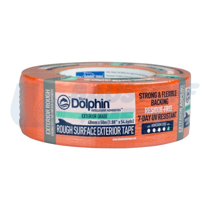 Професионално тиксо за маскиране груби повърхности тиксо за външно приложение BlueDolphin, широчина 48 мм, дължина 50 м., самозалепваща лента, специално проектирана за груби повърхности на външни условия, подходяща е за тухли, цимент, мазилка и други, притежава UV и влаго защита в продължение на 7 дни и не оставя следи от лепило след премахване.