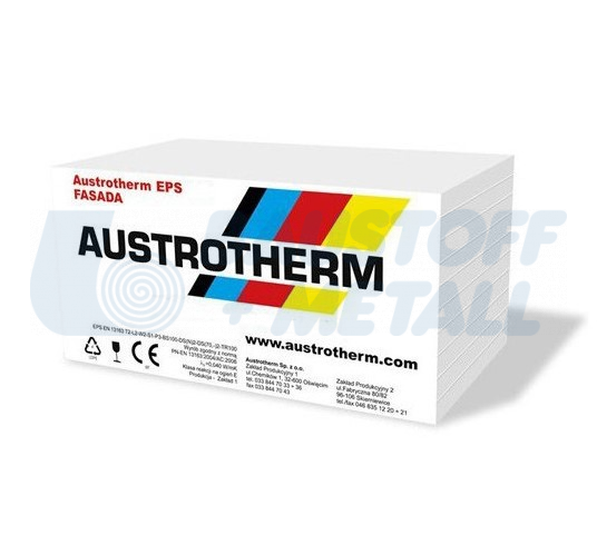 EPS Austrotherm F, ЕПС фасаден стиропор, цвят бял, размер 1000/500 мм, дебелина 100 мм, коефициент на топлопроводимост (ламбда) λD 0,035, пакет 3 м²